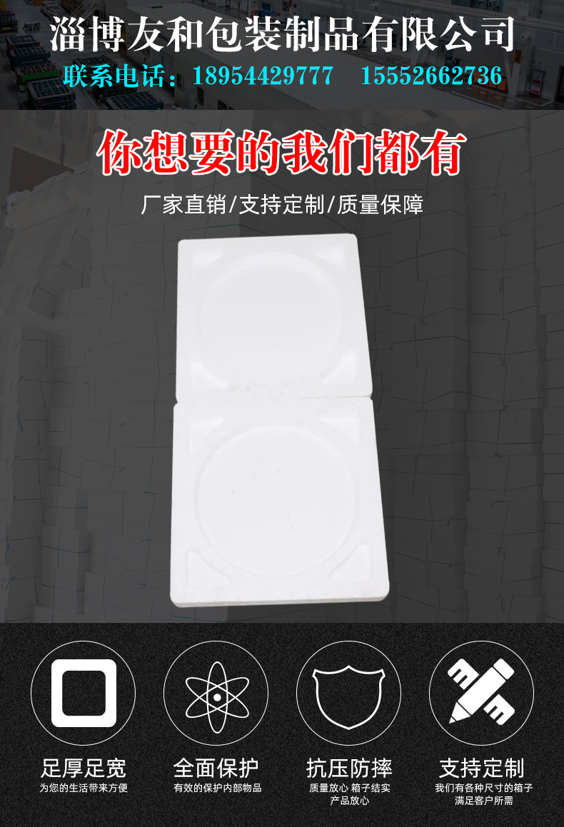 ????淄博友和包裝制品有限公司是專業的山東泡沫包裝箱加工廠家,本廠主要產品有:泡沫包裝箱,泡沫保鮮箱,水果蔬菜泡沫包裝箱,水果蔬菜泡沫保鮮箱,瓷磚泡沫包裝箱等,產品暢銷全國,深受用戶好評。泡沫包裝定做可以聯系我們網站 http://www.webdl.cn/ 上電話,我們會第一時間跟您聯系。