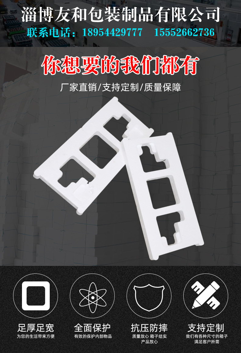 介紹參數圖冊 ????淄博友和包裝制品有限公司是專業的山東泡沫包裝箱加工廠家,本廠主要產品有:泡沫包裝箱,泡沫保鮮箱,水果蔬菜泡沫包裝箱,水果蔬菜泡沫保鮮箱,瓷磚泡沫包裝箱等,產品暢銷全國,深受用戶好評。泡沫包裝定做可以聯系我們網站 http://www.webdl.cn/ 上電話,我們會第一時間跟您聯系。 上一篇電焊鉗泡沫包裝箱 下一篇電熱鍋防壓泡沫包裝箱