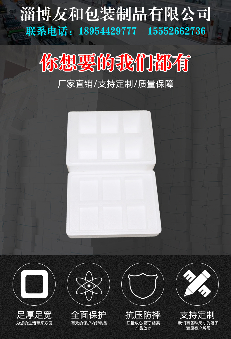 ????淄博友和包裝制品有限公司是專業(yè)的山東泡沫包裝箱加工廠家,本廠主要產(chǎn)品有:泡沫包裝箱,泡沫保鮮箱,水果蔬菜泡沫包裝箱,水果蔬菜泡沫保鮮箱,瓷磚泡沫包裝箱等,產(chǎn)品暢銷全國(guó),深受用戶好評(píng)。泡沫包裝定做可以聯(lián)系我們網(wǎng)站 http://www.webdl.cn/ 上電話,我們會(huì)第一時(shí)間跟您聯(lián)系。