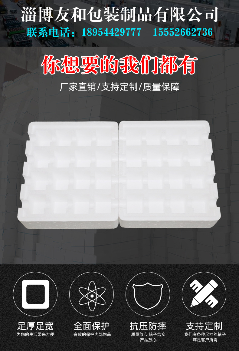 介紹參數圖冊 ????淄博友和包裝制品有限公司是專業的山東泡沫包裝箱加工廠家,本廠主要產品有:泡沫包裝箱,泡沫保鮮箱,水果蔬菜泡沫包裝箱,水果蔬菜泡沫保鮮箱,瓷磚泡沫包裝箱等,產品暢銷全國,深受用戶好評。泡沫包裝定做可以聯系我們網站 http://www.webdl.cn/ 上電話,我們會第一時間跟您聯系。 上一篇10升玻璃容器包裝箱 下一篇9孔雞蛋禮盒包裝盒
